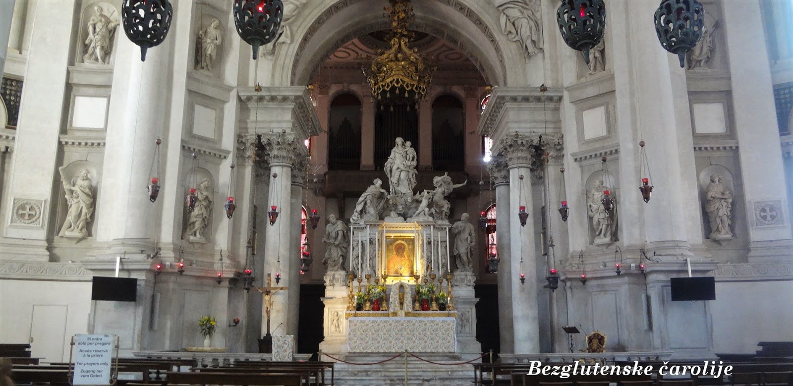Svake godine, 21.novembra održava se Festa della Salute u kojoj učestvuju svi gradski funkcioneri. Tada se postavlja pontonski most kojim prolazi procesija sa Trga sv.Marka do crkve Salute (kako je u žargonu zovu stanovnici Venecije) da bi se tradicionalno obeležila zahvalnost zbog prestanka kuge i spasenja gradjana. Uvek kada dođem u Veneciju, zapalim sveće u crkvi i odrecitujem stihove koje znam. Moji dečaci su učili pesmu u školi, ali te mlade godine ne daju prostora da se sve to razume na pravi način, pa im je moja priča bila zanimljiva. Muž mi je rekao da je zapamtio prvu strofu, jer sam je toliko puta ponovila kada smo nas dvoje prvi put uplovili u Veneciju.